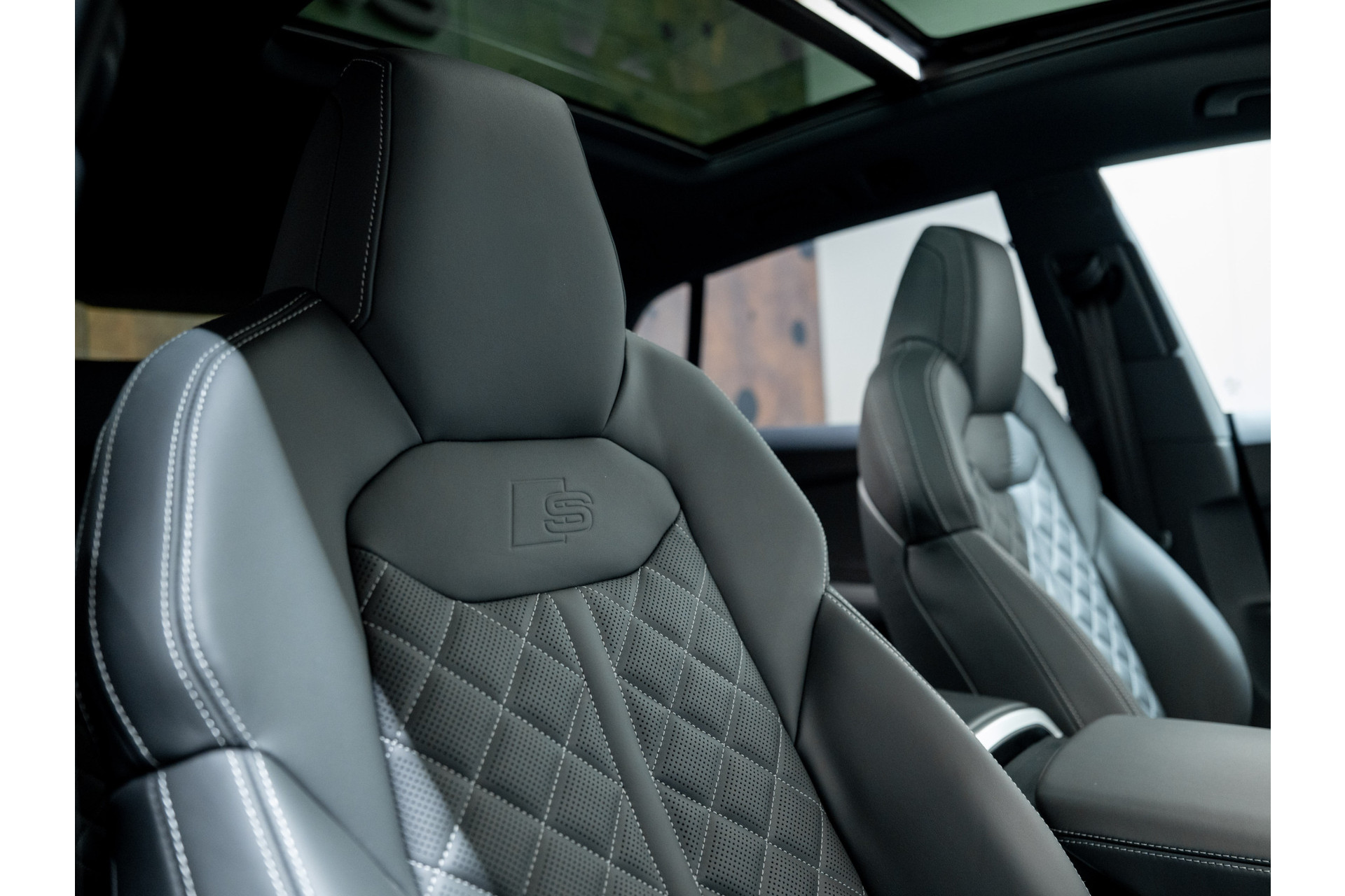 Interieur: Zwart leder met grijs stiksel