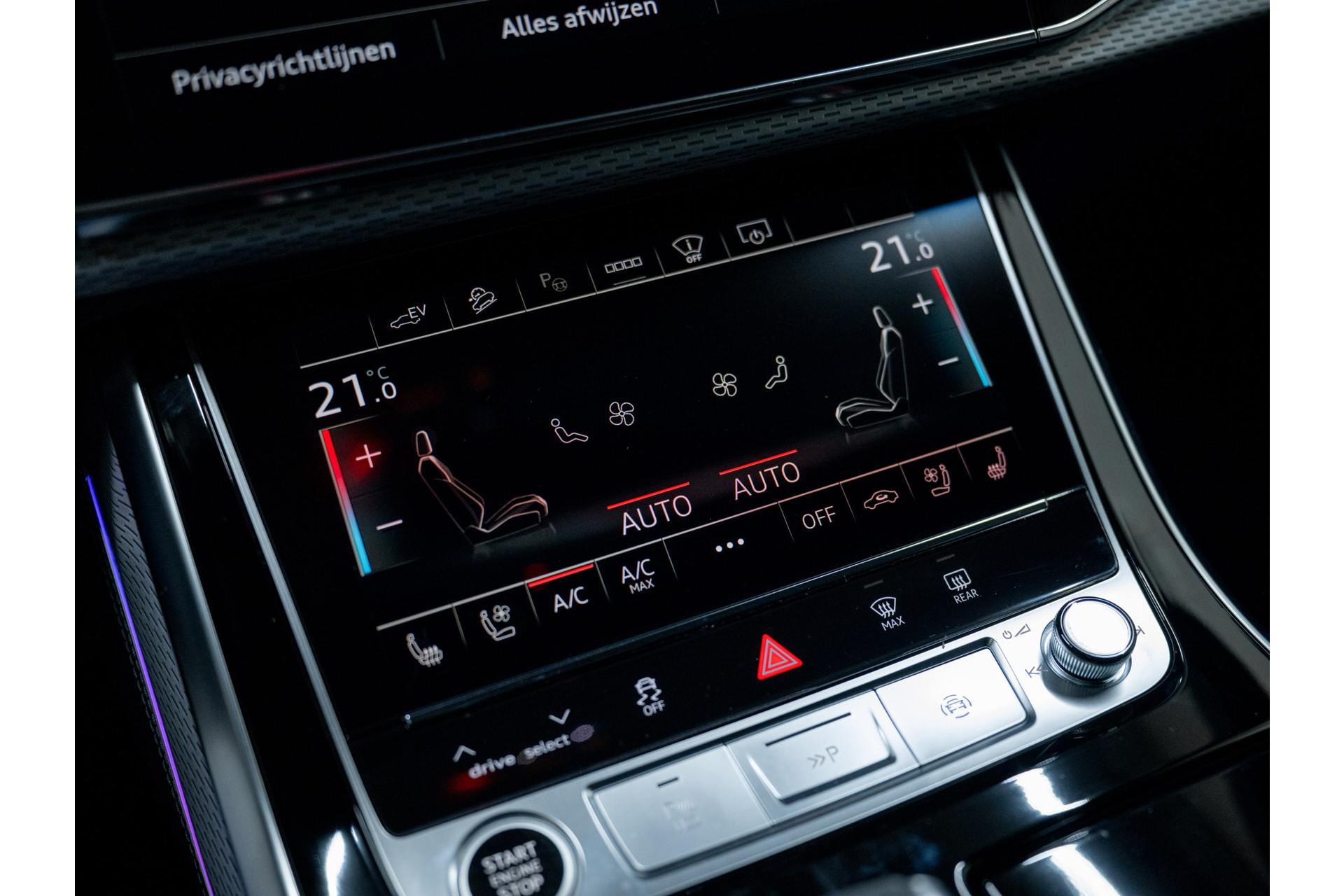 | achterasbesturing | Achterbank plus | Achterbank verstelbaar | Achterbank verwarmd | Achteropkomend verkeer waarschuwing | Achteropkomend verkeer waarschuwing | Achteropkomend verkeer waarschuwing | Achteropkomend verkeer waarschuwing | Achteruitrijcamera | actieve noodgeval assistent | Adaptief demping systeem | Adaptieve luchtvering sport | Airbag bestuurder | Airbag passagier | Airbag(s) hoofd achter | Airbag(s) hoofd voor | Airbag(s) side voor | Airco separaat achter | Akoestisch glas voor deur- en zijruiten | Aluminium interieur afwerking | Ambiente lichtpakket plus | Anti Blokkeer Systeem | Apple Carplay | Armsteun achter | Armsteun voor | Assistentie Pakket | Assistentie pakket Parking | Assistentie pakket Parking | Assistentie Pakket Plus | Audi drive select | Audi phone box | Audi Virtual Cockpit | Audio installatie premium | automatische snelheidsbegrenzing ISA | Autonome parkeerfunctie | Autonome parkeerfunctie | Autonome parkeerfunctie | Autonomous Emergency Braking | Bagagedek | Bang & Olufsen Premium Sound System met 3D-geluid | Binnenspiegel automatisch dimmend | Bluetooth | Bots herkenning systeem | bots waarschuwing systeem | Buitenspiegel(s) automatisch dimmend | Buitenspiegels elektr. met geheugen | Buitenspiegels elektr. met geheugen | Buitenspiegels elektr. met geheugen | Buitenspiegels elektrisch inklapbaar | Buitenspiegels elektrisch verstel- en verwarmbaar | buitenspiegels in andere kleur | centrale vergrendeling met afstandsbediening | City-pakket | Connected services | Cruise control | Cruise control adaptief met stop&go | Cruise control adaptief met stop&go | Cruise control adaptief met stop&go | Dab | Dakrails aluminium zwart | Dakspoiler | Digitale OLED acherlichten | Dimlichten automatisch | Dodehoek detector | Dodehoek detector | Dodehoek detector | Dodehoek detector | Draadloze telefoonlader | electronic climate control | Elektrisch bedienbare achterklep | Elektrisch glazen panorama-dak | Elektrisch verstelb. bestuurdersstoel met geheugen | Elektrisch verstelb. bestuurdersstoel met geheugen | Elektrisch verstelbare bestuurdersstoel | Elektrisch verstelbare passagiersstoel | Elektrisch verstelbare stoel(en) met geheugen | Elektrisch verstelbare stoel(en) met geheugen | Elektrische ramen voor en achter | Elektronisch Stabiliteits Programma | Fabrieksgarantie | File assistent | File assistent | File assistent | Grootlichtassistent | HD Matrix LED-koplampen met Audi laserlicht, LED-achterlichten en koplampsproeiers | Head-up display | Head-Up Display | hemelbekleding donker | Hill hold functie | hoofdsteunen anti-whiplash | interieurklimaat vooraf instelbaar | Koplampen adaptief | koplampreiniging | Kruisend verkeer detectie | Kruisend verkeer detectie | Kruisend verkeer detectie | Kruisend verkeer detectie | kunstlederen interieurdelen | LED achterlichten | LED dagrijverlichting | Lederen bekleding | Lederen bekleding | lederen/microvezel bekleding | lendesteun(en) elektrisch verstelbaar | lichtmetalen velgen 23" | Luchtvering en automatische niveauregeling | Matrix led koplampen | Memory-pakket | Memory-pakket | multimedia scherm standaard | Multimedia-voorbereiding | Navigatiesysteem full map | Optiekpakket zwart plus | Parkeer assistent | Parkeer assistent | Parkeersensor achter | Parkeersensor voor | Privacybeglazing | Regensensor | Rijstrooksensor | Rondomzicht camera | Rondomzicht camera | Rondomzicht camera | Rondomzicht camera | S Line exterieur | schakelpaddles | sfeerverlichting | smartphone integratie | Smartphone integratie | Soft-Close portieren | Sportonderstel | Sportstoelen | Sportstoelen plus voor | Start/stop systeem | Stoelen-pakket | Stoelverwarming voor en achter | stuur leder | stuur multifunctioneel | Stuur verstelbaar | Stuurbekrachtiging | stuurkolom elektrisch verstelbaar | Stuurwiel multifunctioneel | Stuurwiel verwarmd | Tour pakket | Trekhaak elektrisch uitklapbaar | Uitparkeer waarschuwing | Uitparkeer waarschuwing | Uitparkeer waarschuwing | Uitparkeer waarschuwing | uitstap waarschuwing | uitstap waarschuwing | uitstap waarschuwing | uitstap waarschuwing | uitwijk assistent | uitwijk assistent | uitwijk assistent | Verkeersbord detectie | Vierwielbesturing | Volledig digitaal instrumentenpaneel | Voorstoelen met massagefunctie en geventileerd | Voorstoelen met massagefunctie en geventileerd | Voorstoelen verwarmd | Warmtewerend glas | WiFi | Zwarte stoffen hemelbekleding |