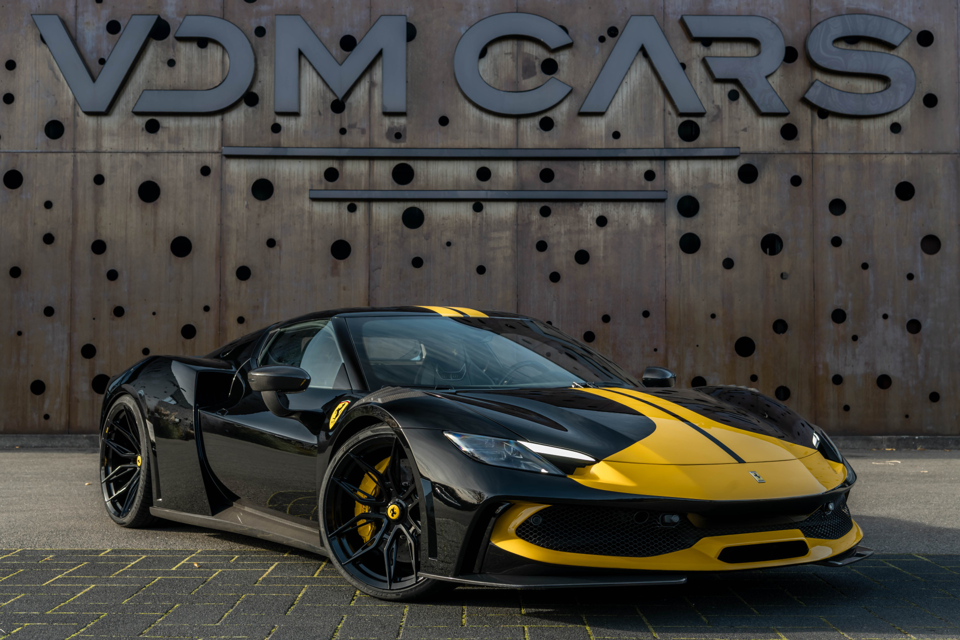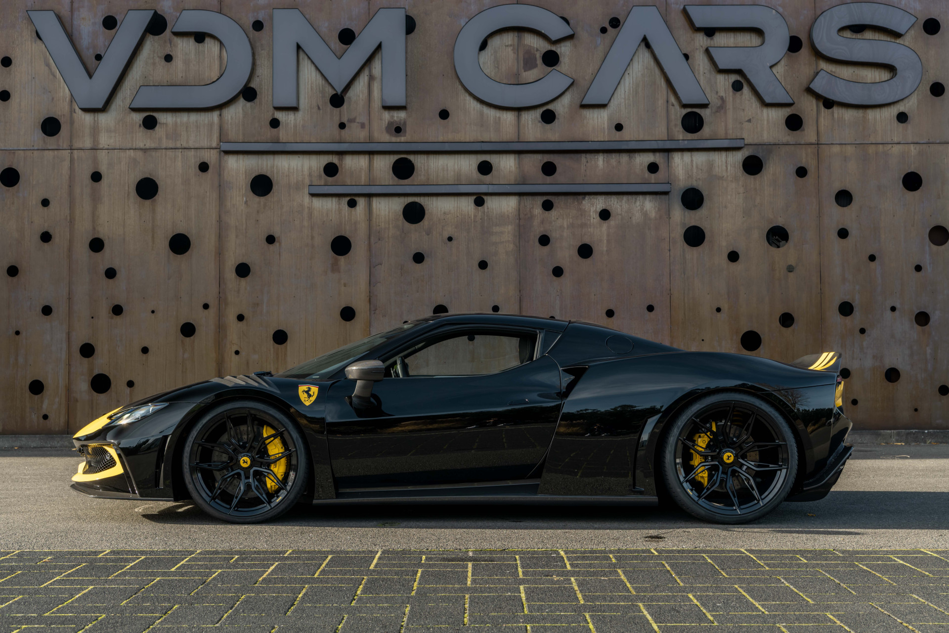 Een zeldzame verschijning: deze Ferrari 296 GTB N-Largo, voorzien van het Assetto Fiorano pakket, in het diepzwarte Nero DS 1250 gecombineerd met een Giallo Modena racing livery. De N-Largo-uitvoering staat garant voor extreme exclusiviteit en een gelimiteerde oplage – een zeldzaamheid die slechts voor enkelen is weggelegd. De verbrede carrosserie, gecombineerd met de Giallo Modena livery en Painted Shields, maakt dit tot een prachtig Novitec N-LARGO exemplaar. Uitgevoerd met een zwart lederen interieur voorzien van volledig elektrische comfortstoelen en een hoogwaardig carbonpakket, straalt dit gelimiteerde exemplaar pure sportiviteit en verfijning uit. Een zeldzame kans om een gelimiteerde Ferrari 296 GTB N-Largo te bezitten in een uiterst stijlvolle en krachtige configuratie.