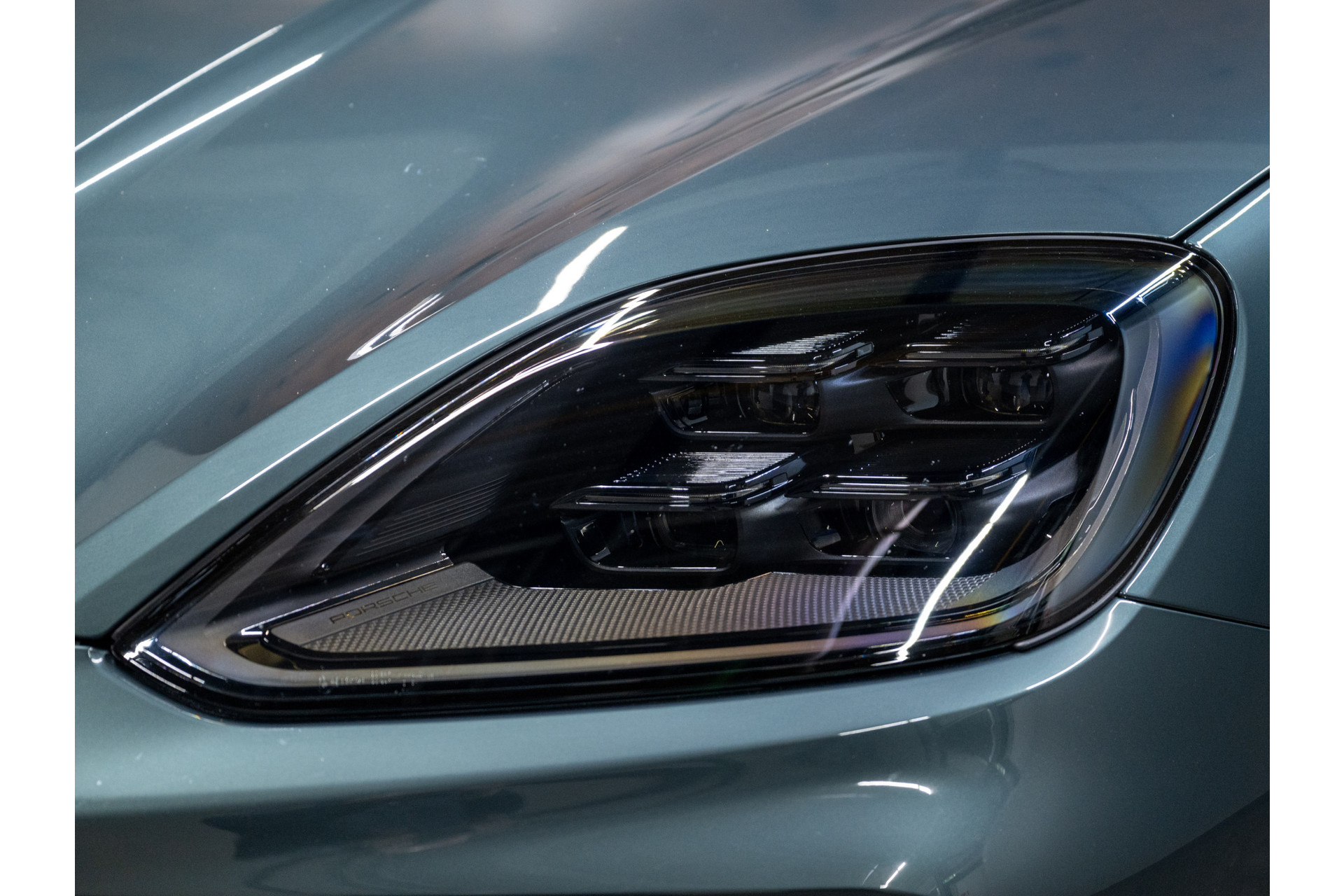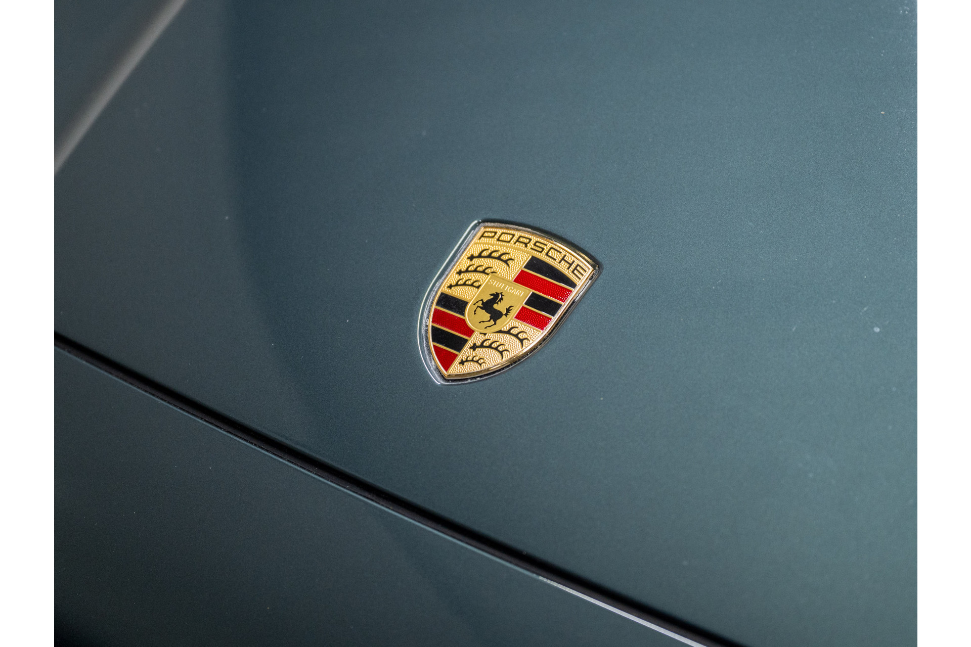 'PORSCHE' logo gespoten in hoogglans zwart en modelaanduiding gespoten in hoogglans zwart